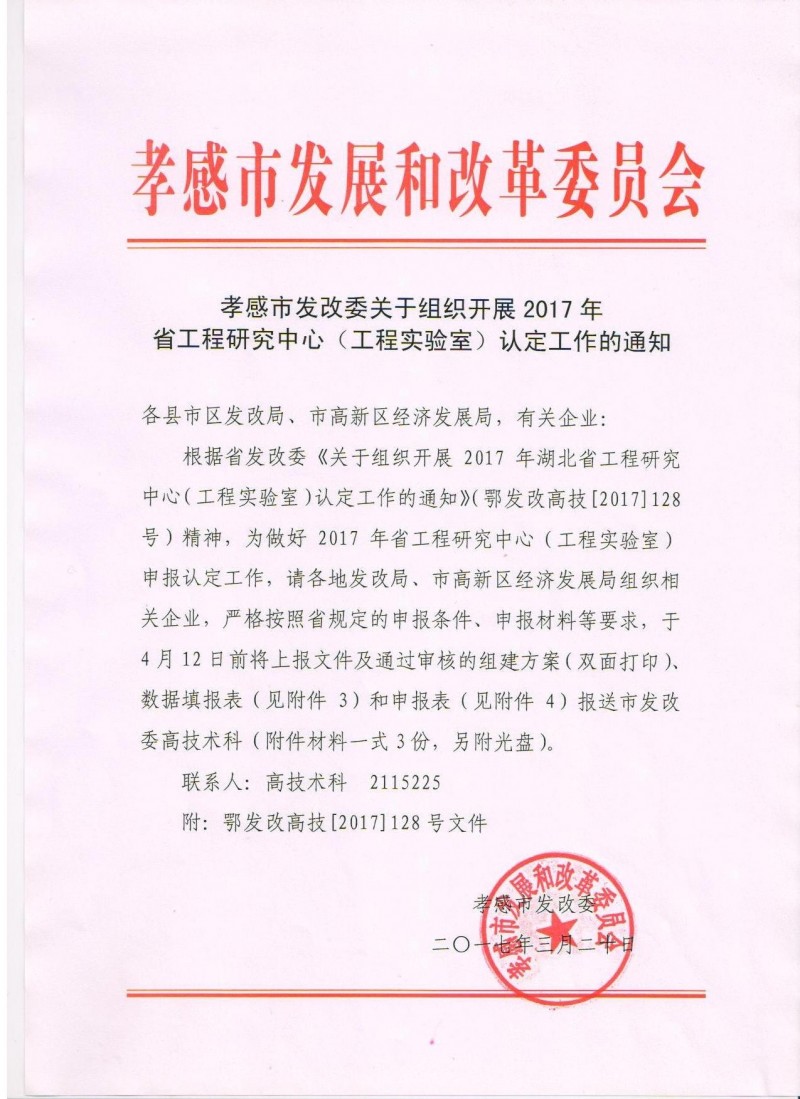 孝感市發(fā)改委關(guān)于組織開展2017年省工程研究中心(工程實(shí)驗(yàn)室)認(rèn)定工作的通知